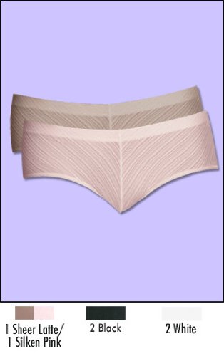 2-Pack Barely There Concealing Comfort Bikini 2-pack X577, 1 Sheer Latte/1 Silken Pink, 7. Soft, smooth waistband with encased elastic for supreme comfort. Sleek shadow striped fabric is invisible under clothes. There are no irritating tags and no panty lines! Compliments the Barely There Concealers bras.